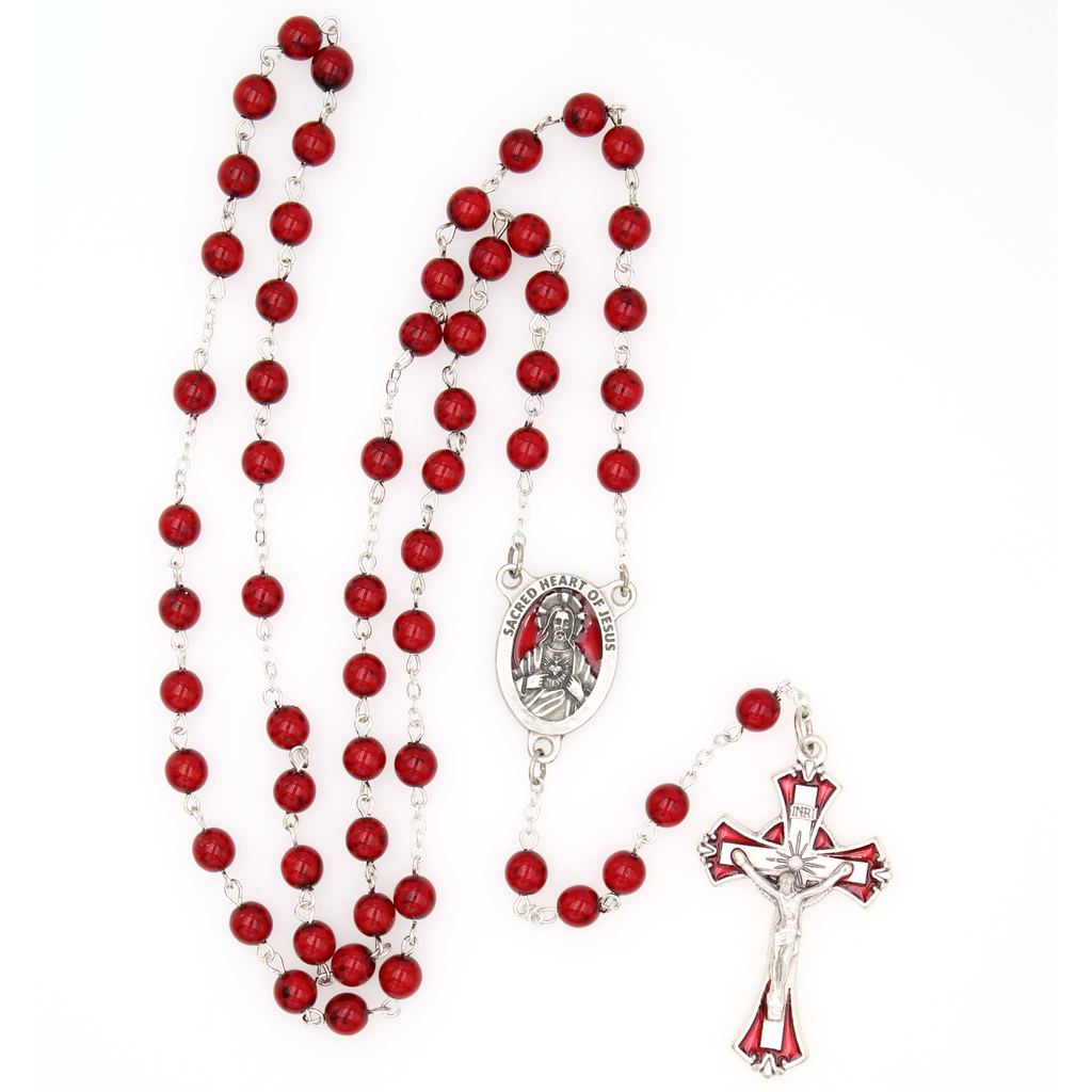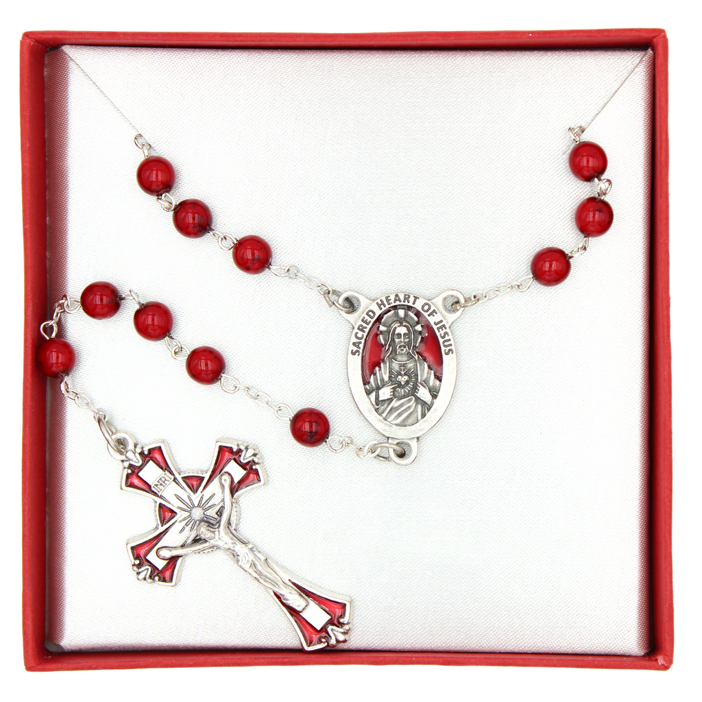 Sacred Heart Rosary with Enameled Center and Crucifix - 9865RD/55/SHJ