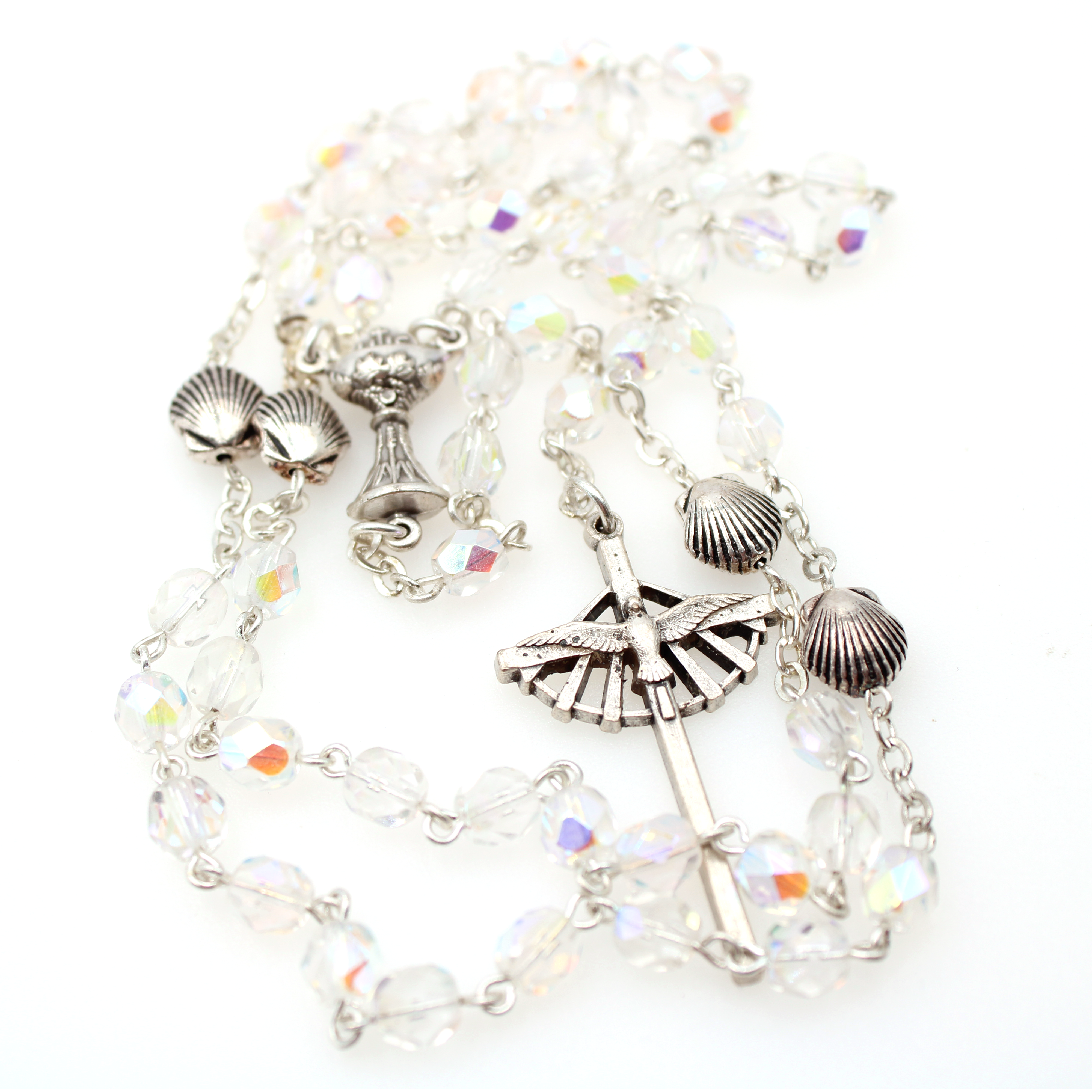 Clear Crystal Rosary with Chalice Center and OCIA Cross - 307/OCIA