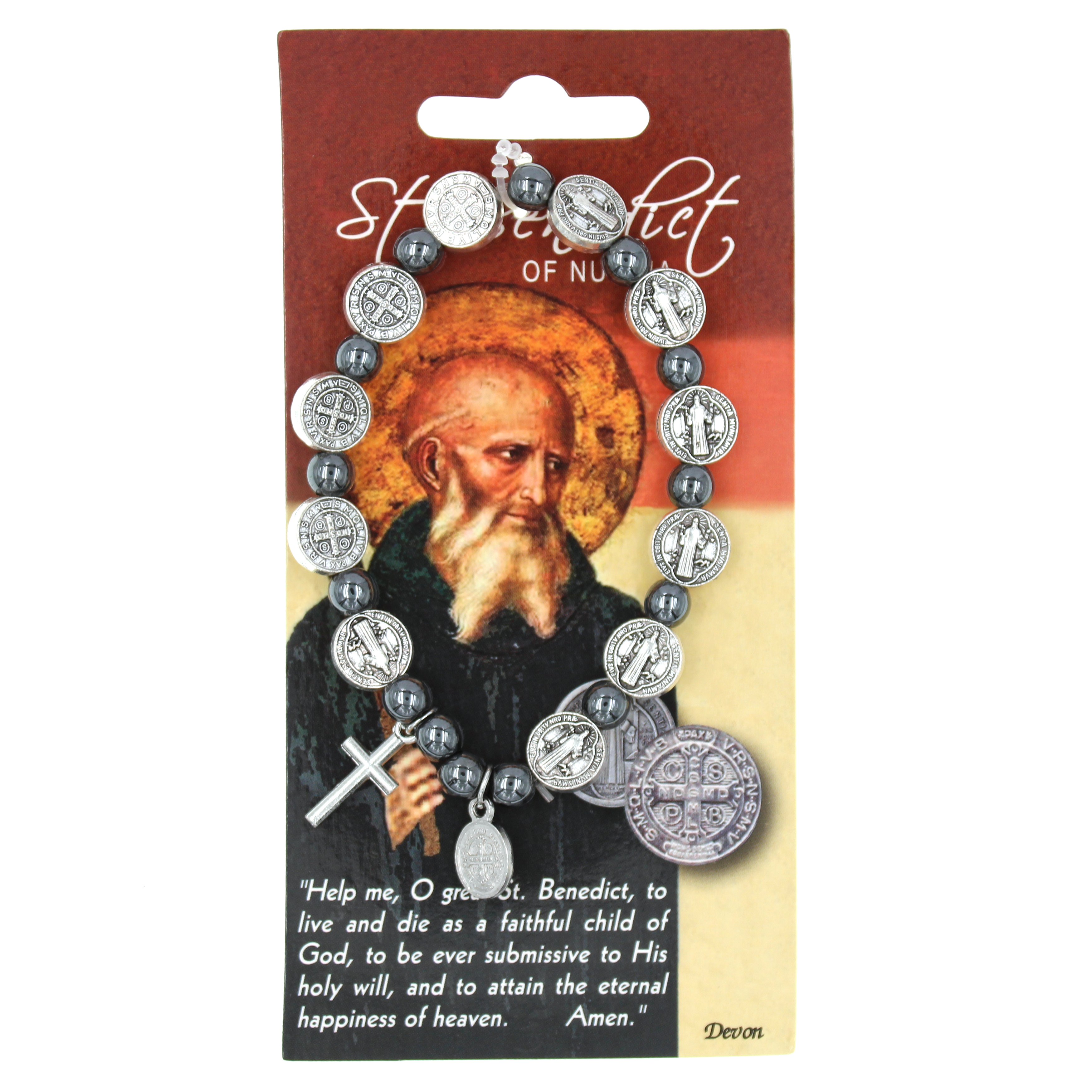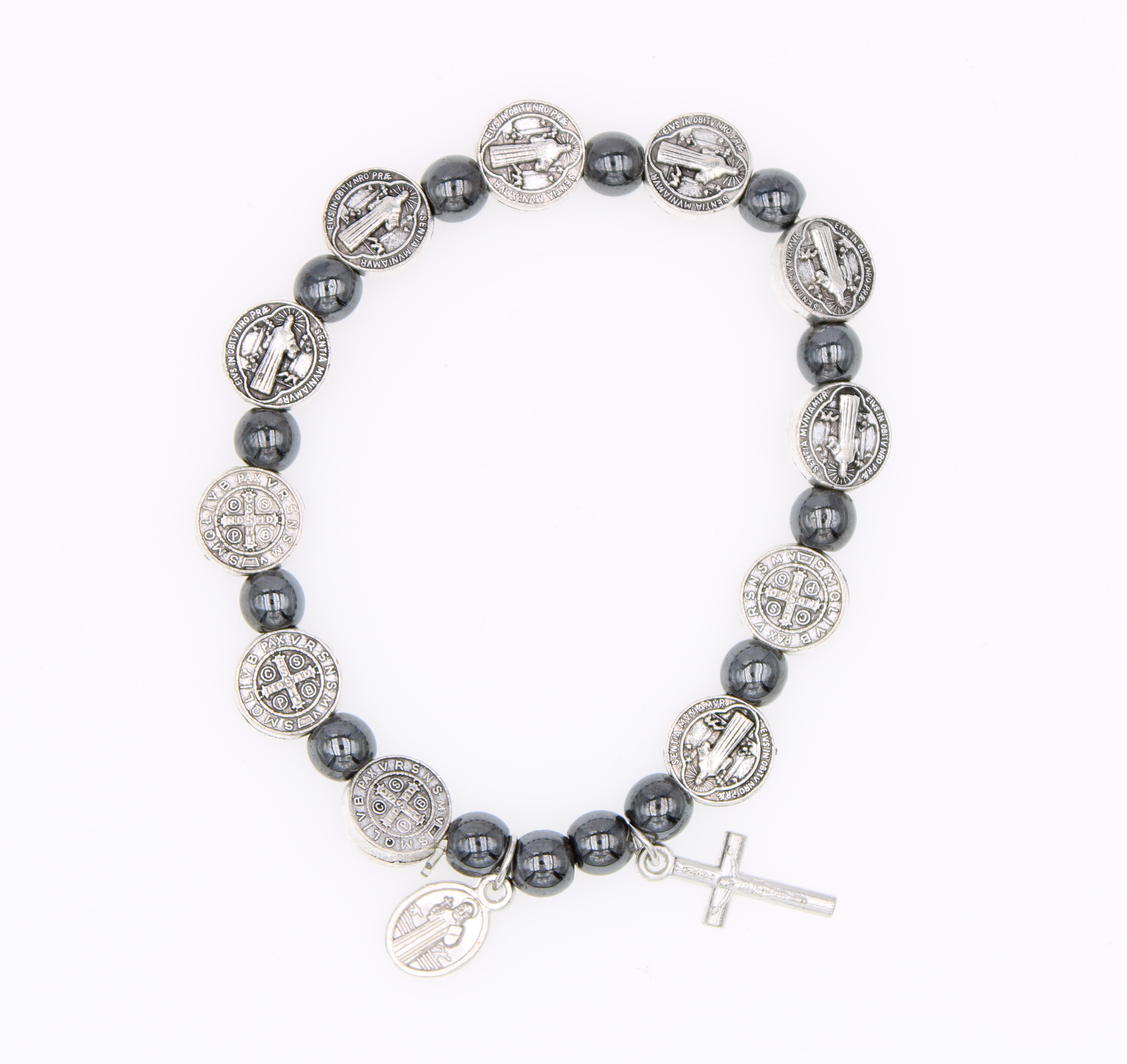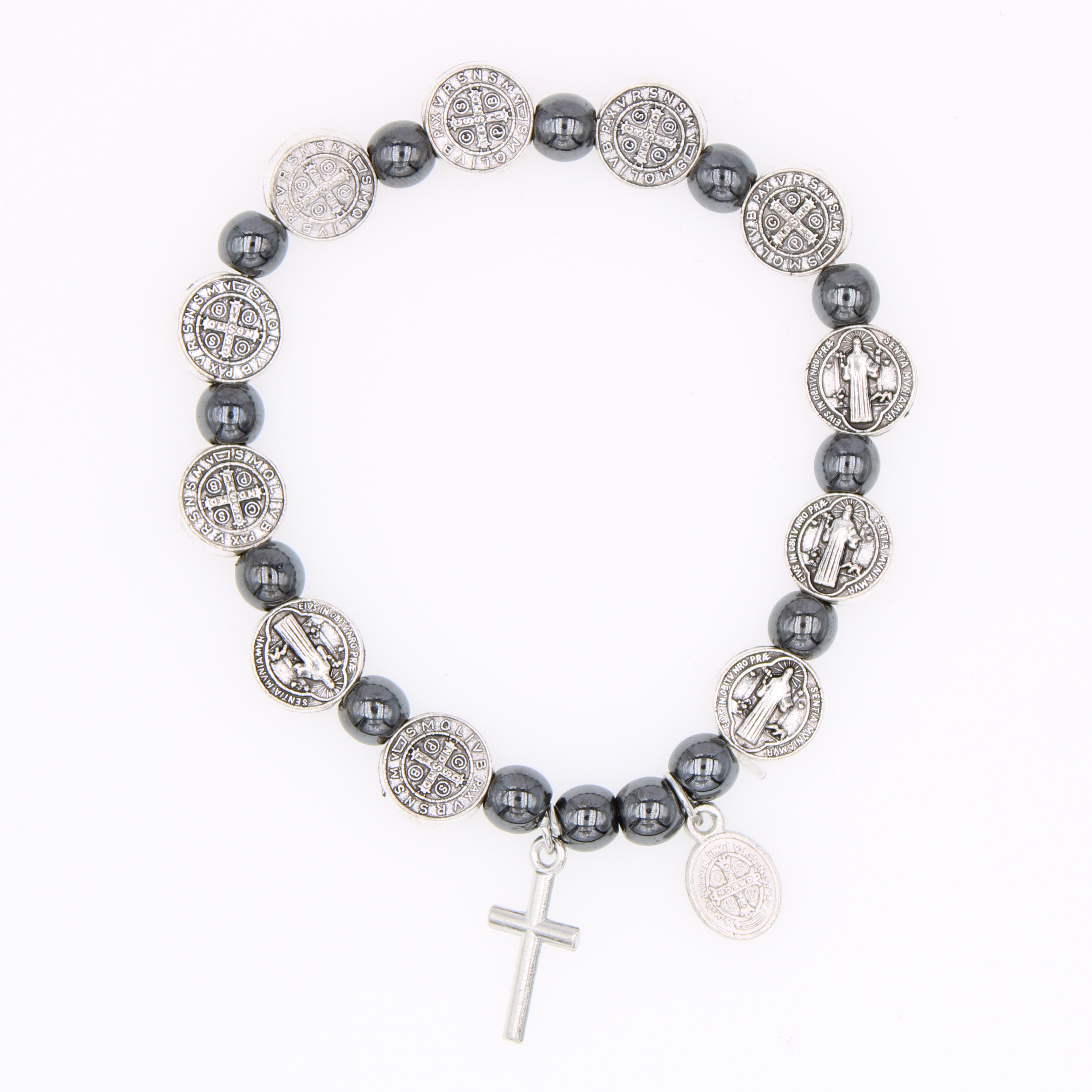 Saint Benedict Hematite Rosary Bracelet - 45850/BEN/C