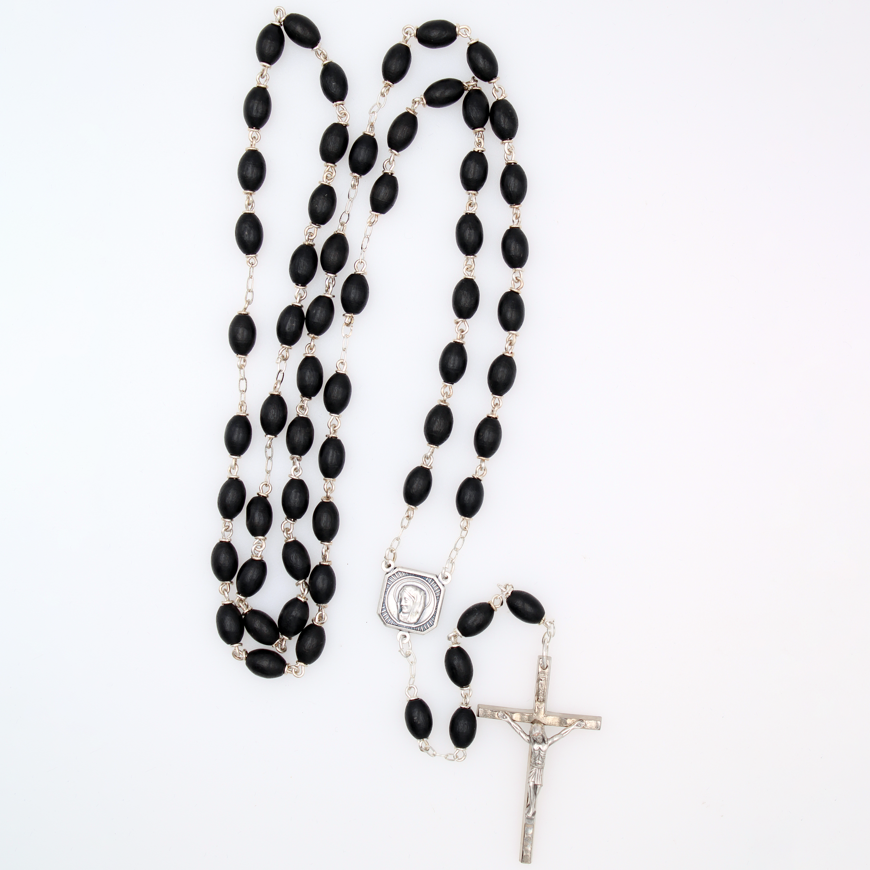 Polished oval boxwood bead rosary, locklink, 24½”.62/R/BK Black62/R/BN Brown