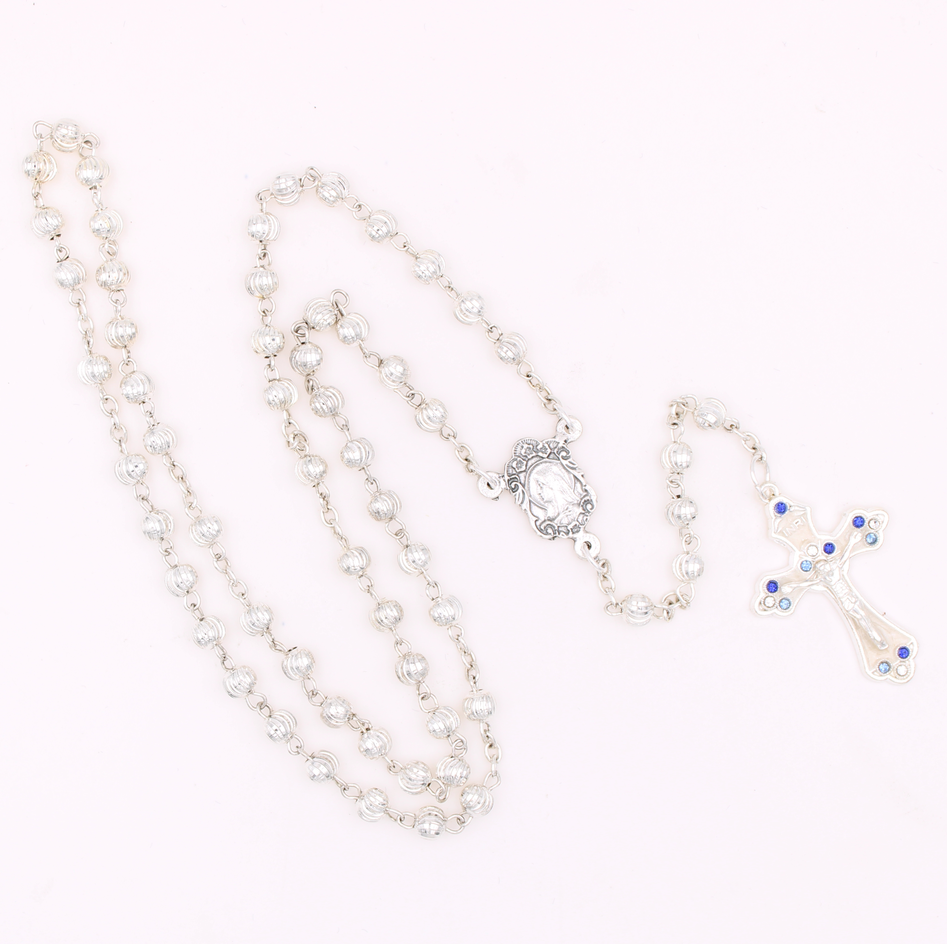 4mm Stainless Steel Rosary with Miraculous Center and Enameled Cross with Blue Accents - 907S/55/9274