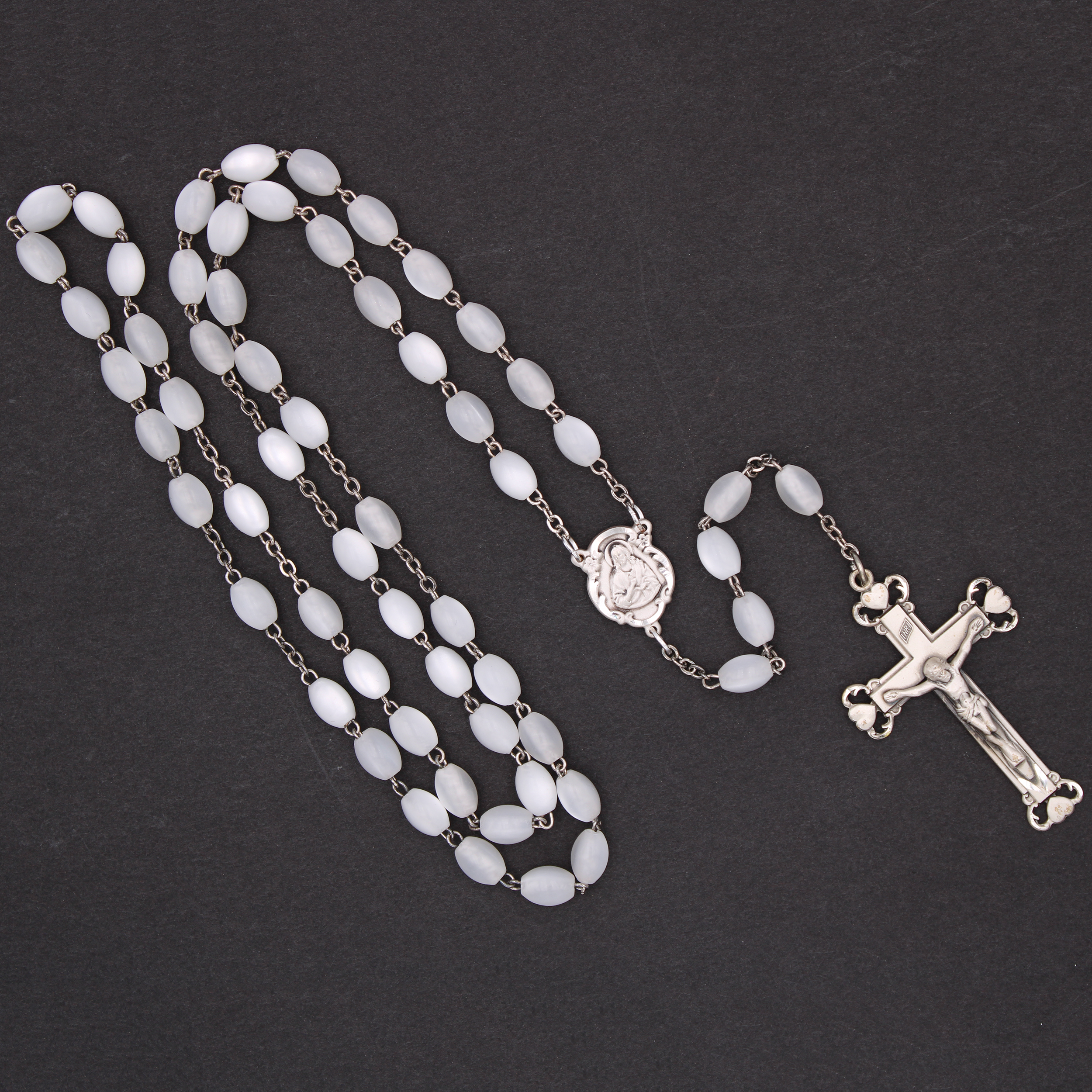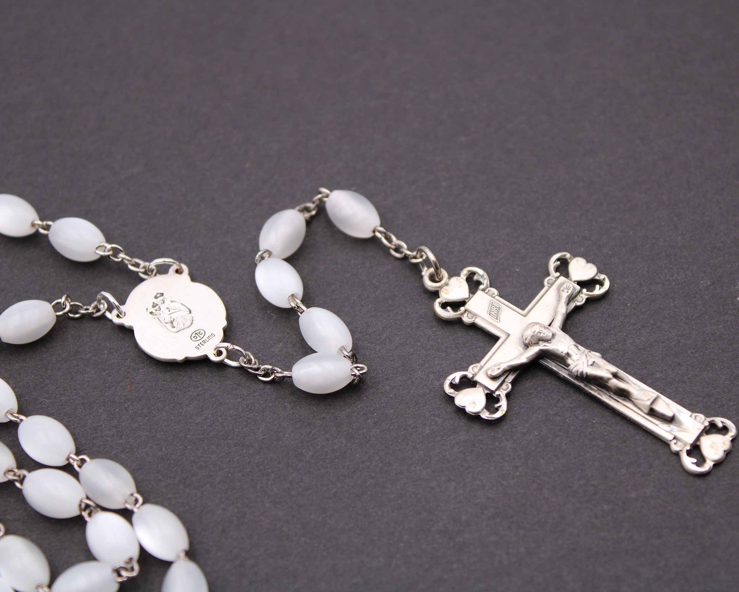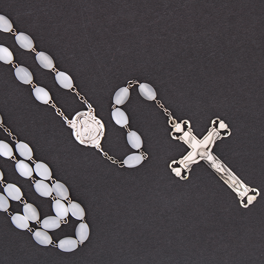 Sterling Silver Faux Mother of Pearl Rosary - 4953/F