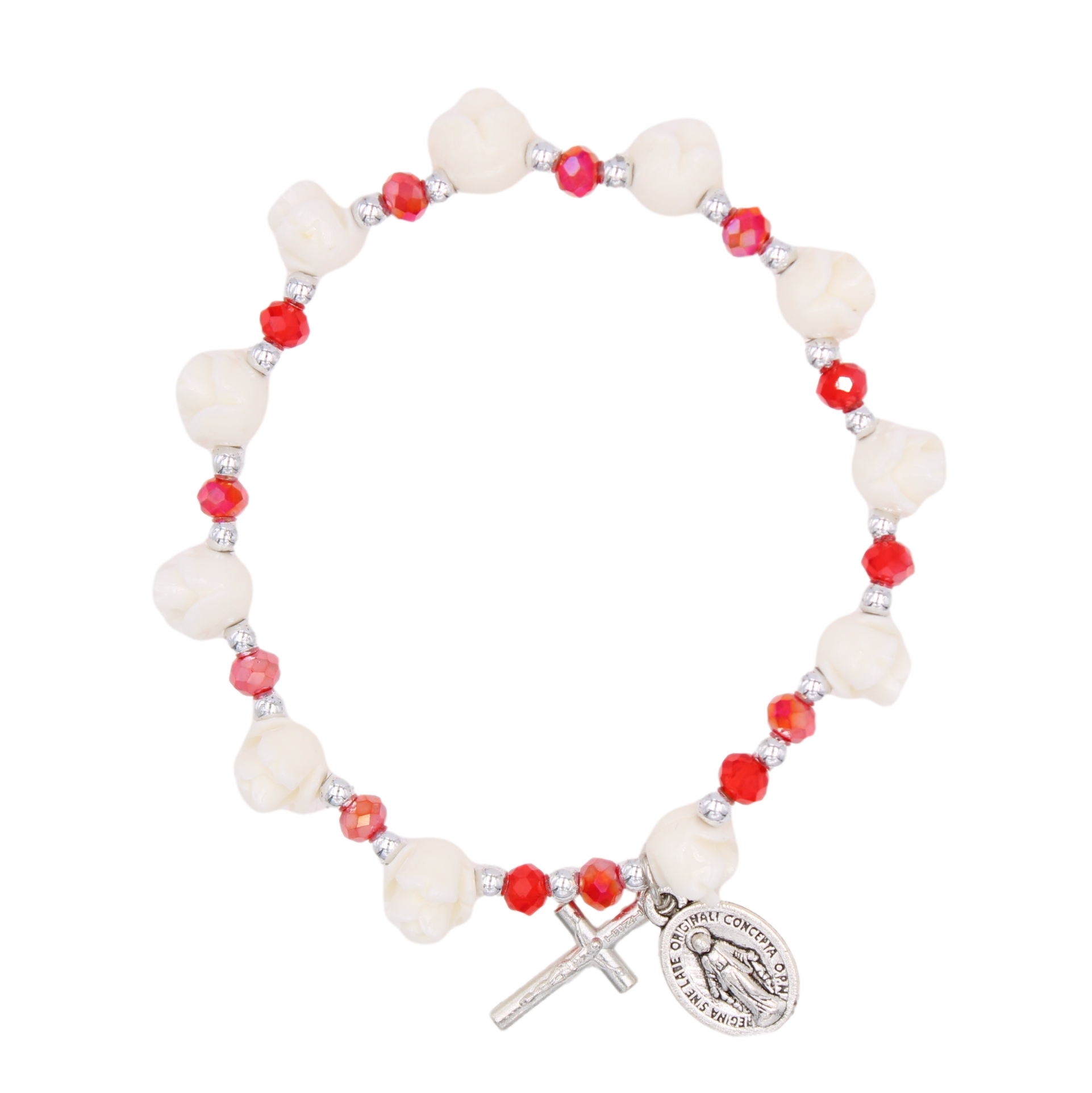 Ruby Flower Bracelet with Miraculous Medal and Crucifix- 40658/RB/NB