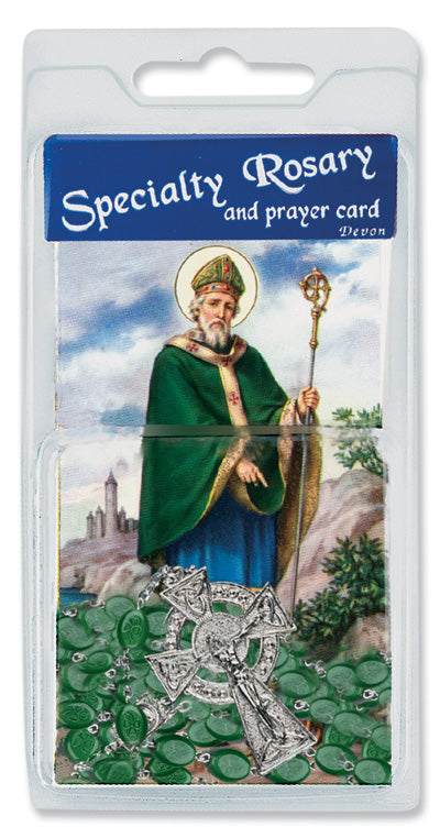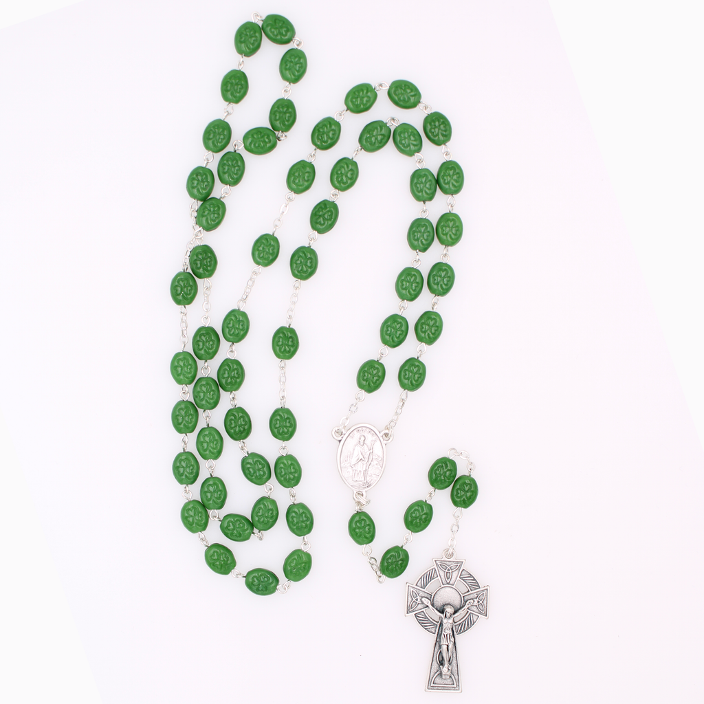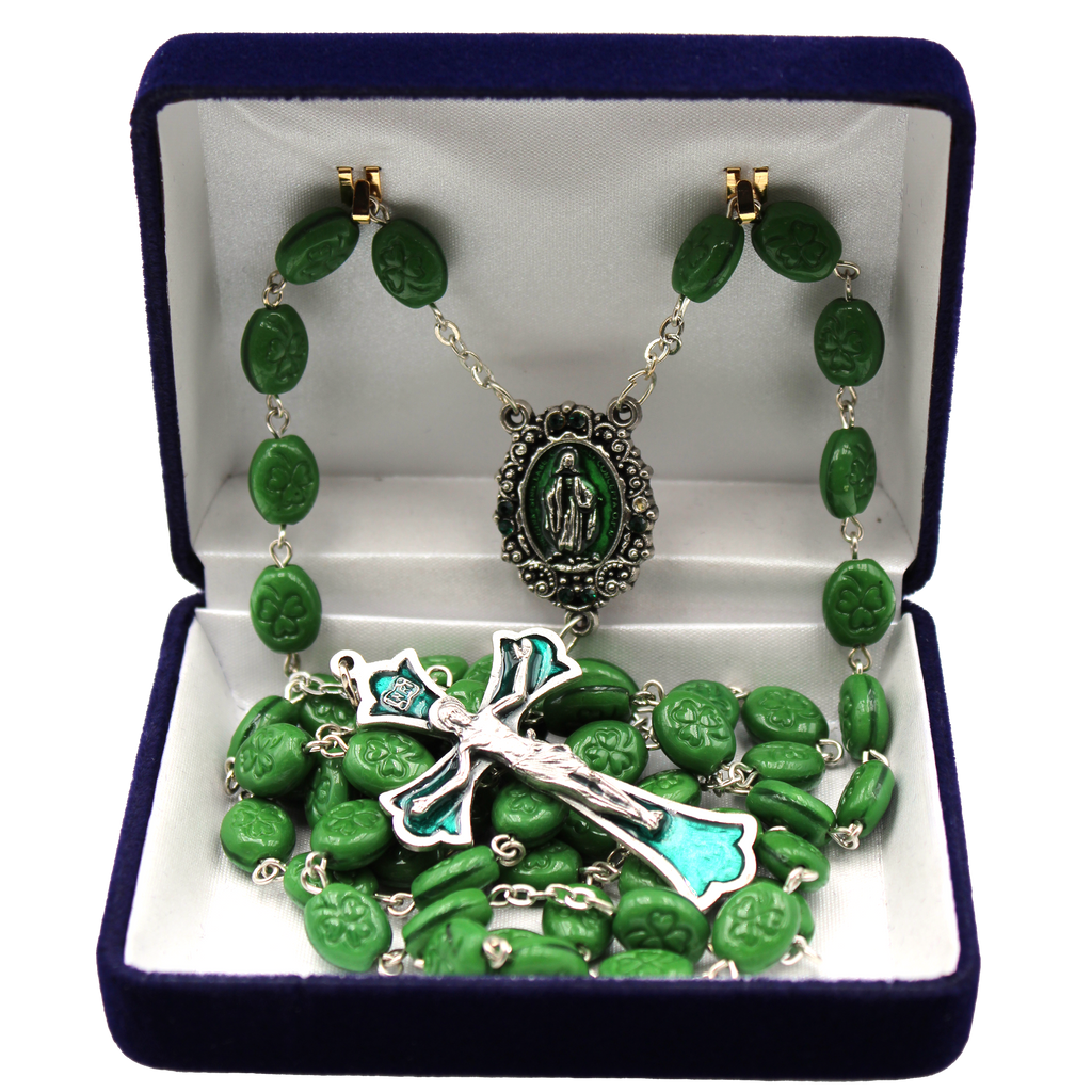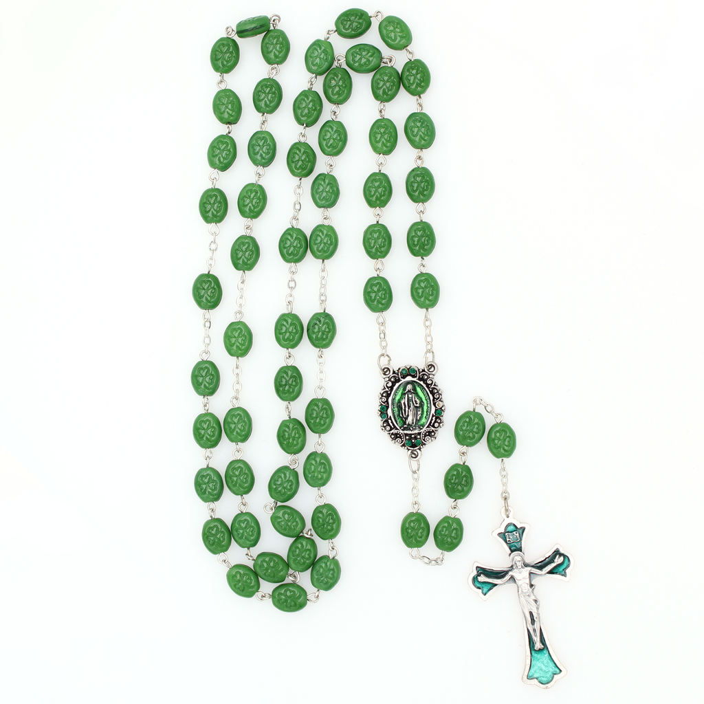 Irish Shamrock Bead Rosary with Enameled Miraculous Center and Crucifix- 46/55/CEL
